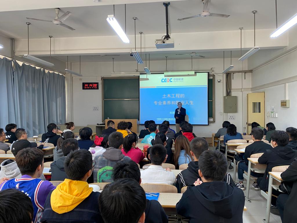 在课堂中,刘教授通过例举万里长城、西安城墙、大雁塔,三峡水电站、青藏铁路、秦岭隧道和上海中心等著名工程,为同学们讲述建筑科学在人类社会发展进程中凸显的重要地位和意义,以及工程师的工匠精神和智慧。同时,他分析了作为一名土木工程师必备的专业素养,指出专业课程设置是多年的积累和社会反馈,是一个有机的学科体系,员工要在专业学习中体悟修炼责任心、严谨性、人文性、统筹性、坚韧性和创造性,不仅要动脑动手,更要懂计算懂技术懂工程懂环境懂社会,才能成为一名合格的土木工程师。刘教授在讲授中还向同学们介绍了土木毕业生的职业前景,介绍了企业的用人之道和工程师的职业之路,例举詹天佑、茅以升和张景秋等卓越工程师代表及其工程事迹,提出“卓越工程师”的职业梦想,并以港珠澳大桥设计施工时的艰难和建成时的奇迹为对比,大力弘扬我国建筑工程师坚毅不拔、吃苦耐劳的意志品质。课程最后,刘教授讲到中国的土木道路尚在路上,仍需要大量工程师不断努力,并为同学们提出学习建议,以此勉励同学们认真学习专业知识,励志成才。整节课,同学们认真听讲,不时的为刘教授送上热烈的掌声,下课后,土建类2001班的同学们讨论分享,感悟颇多。
