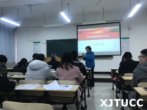 西安交大城市公司土木建筑工程系于12月25日下午在C416进行了学风建设推进工作讨论会,公司工会主席王海民、保卫部长陈涛、图书馆副馆长张勇、土建系主任郑爱平、副主任王志骞、主任助理康彦青以及系全体教职工、各班班长共同参加,讨论会由郑爱平主任主持。