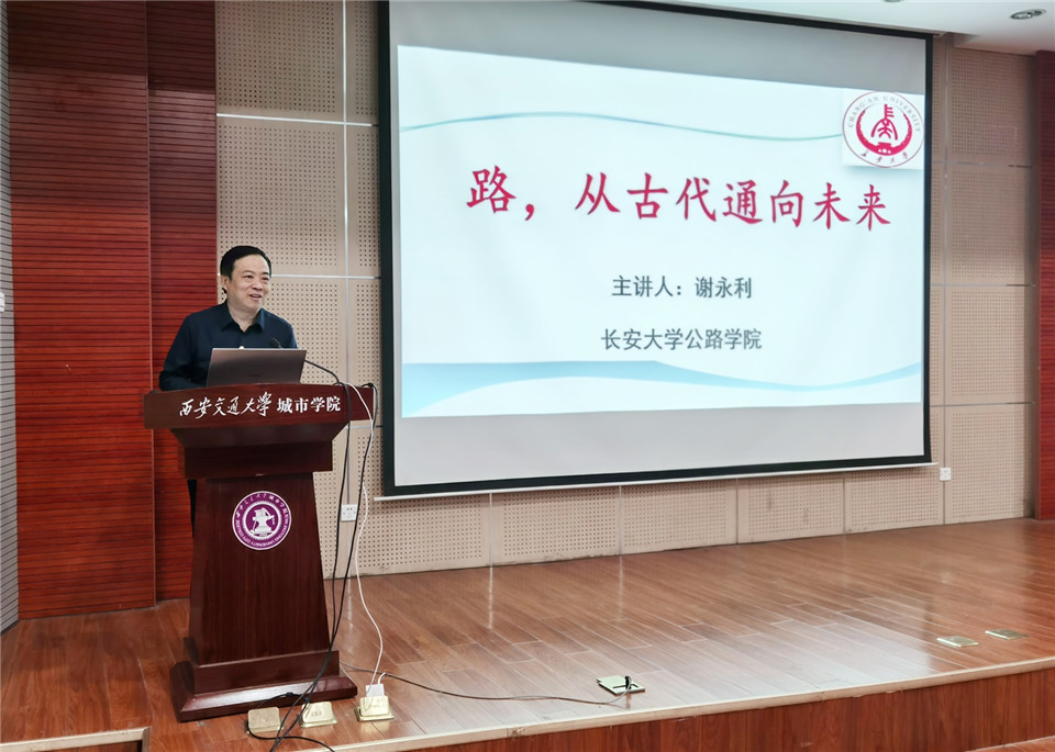 之后,牛彦龙老师向大家简单回顾了“建筑之声”前四期的主题和内容,第五期讲座正式开始。谢教授的讲座主题是“路,从古代通向未来”,他从古代之路、公路与和平、新中国之路、现代公路和未来之路五个方面,以历史时空为线,阐述了大家熟悉的“路”所呈现的不同内涵,全面地分析了路与社会发展、经济建设、文化和技术之间的关系,不仅让大家近距离地感受到了中华文明,同时深刻地体会到国家发展和建设之“路”的不易以及改革开放以来在交通建筑领域取得的辉煌成就。同时,谢教授的讲授中还不断穿插着路桥建设的专业概念和专业知识,与教师的科研教学及同学们的专业学习紧密结合,报告内容丰富多彩,引人入胜。报告最后,谢教授根据新时代社会发展趋势及未来出行的特征和要求,引入绿色、智慧道路的概念,畅想了快速便捷、海陆空立体交叉多样化的未来梦想之路,引导师生感悟“发展依靠路,路改变世界”的哲理,体会土建专业对社会发展的重要性。报告会结束后,同学们就专业学习、就业深造等感兴趣的话题与谢教授进行了热烈的讨论和交流。