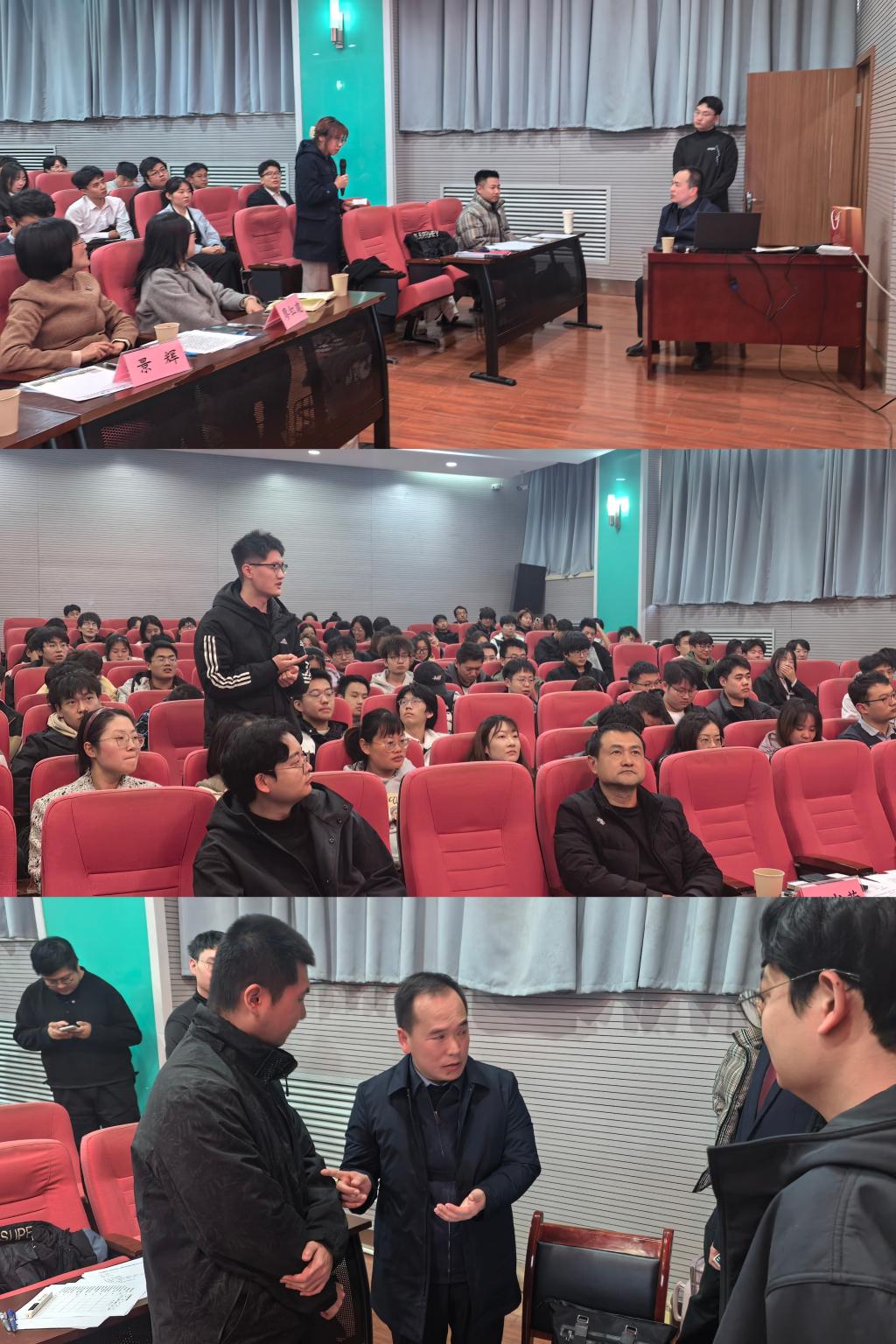 在互动环节,同学们纷纷提问交流,景辉教授就智能监测、工程建设与生态保护、新老城市发展平衡等问题进行解答并强调了绿色发展理念和科技创新在城市建设中的重要性。