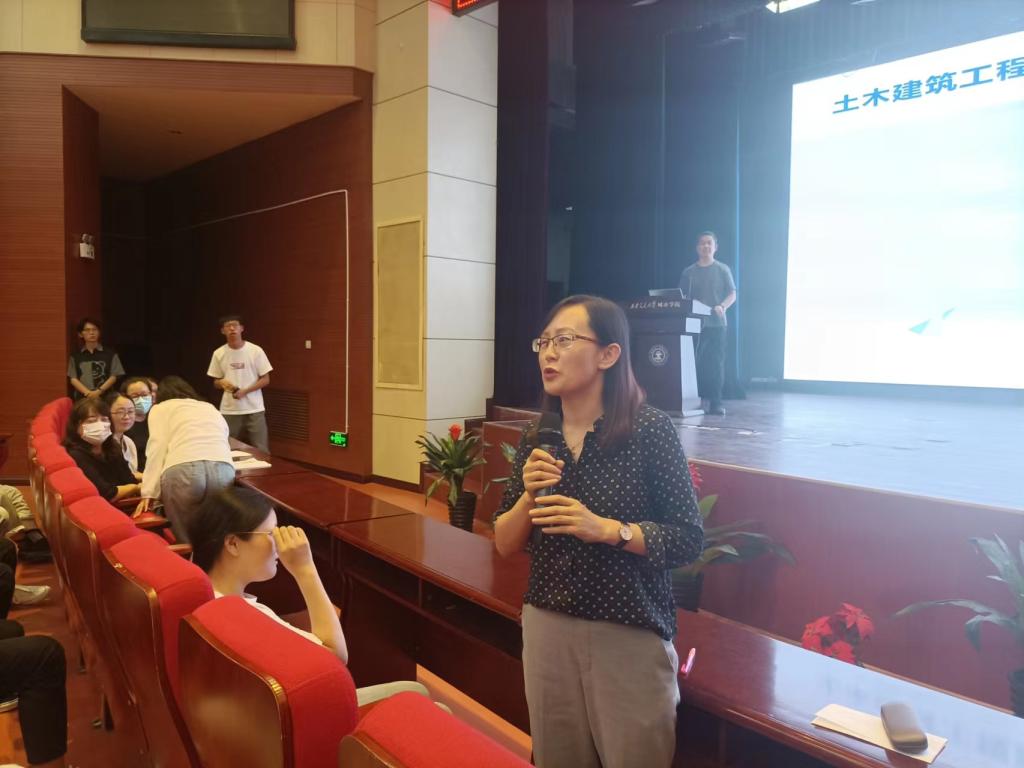 接着,系主任助理康彦青副教授、黎莹副教授分别就建环与土木工程两个本科专业的培养计划和学习任务进行了系统地讲解,帮助同学们进行合理的学业规划和指导。同时,两位老师还向同学们详细介绍了土建系部门职责与各位教职员工。接下来,高年级同学代表关宁与曹诗翘进行了发言,他们在与同学们分享自己学习经验的同时,也就积极锻炼课外能力,丰富老员工活等提出了自己的建议。