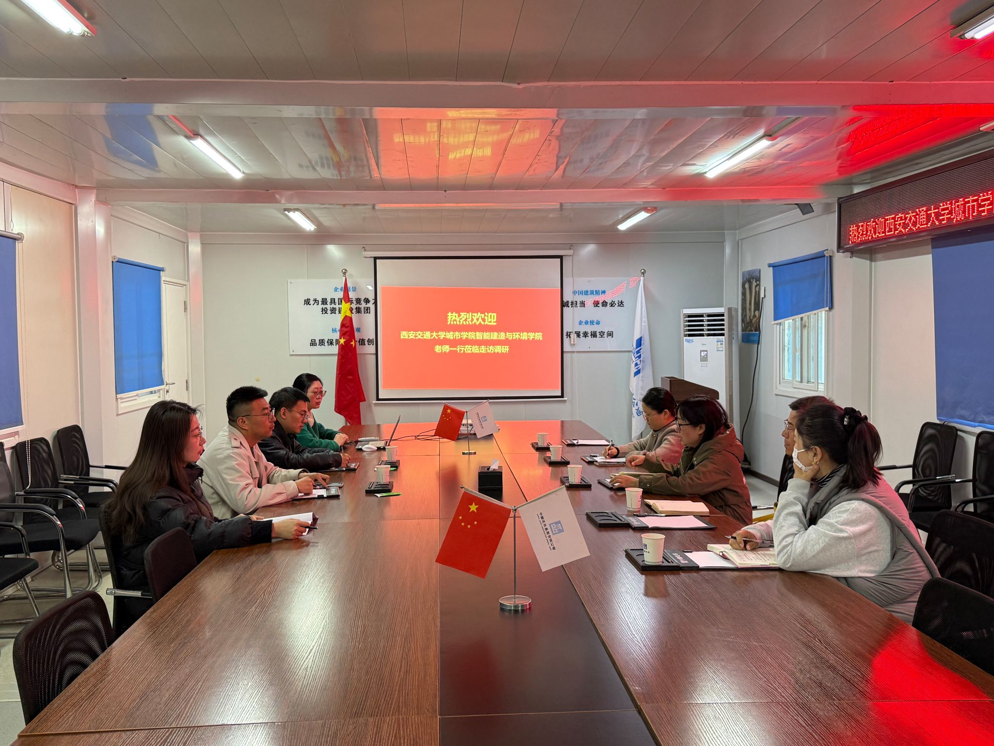 为进一步推进球友会的就业工作,拓宽毕业生就业渠道加强与企业的紧密联系,3月19日,智能建造与环境公司副经理黎莹、土木工程系主任代倩、员工工作负责人李辉以及辅导员张庆莹、杨洋一行人前往中建新远凝远厂房项目开展访企拓岗专项行动。项目总工刘玮商务部合同管理工程师段青青造价工程师刘依林技术质量部资料工程师闫丽蓉出席了活动。
