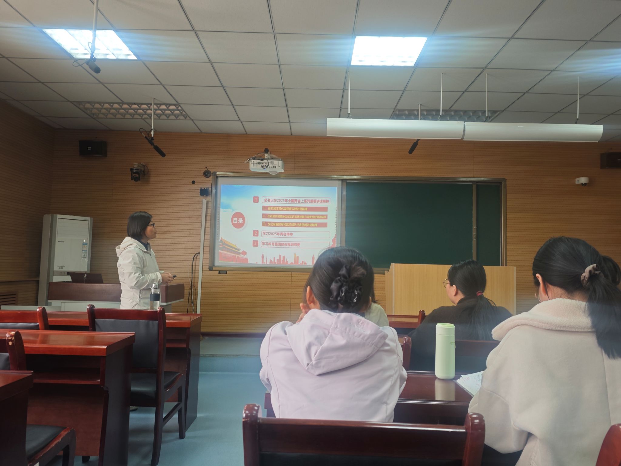 郭秀芹首先带领全体党员集中学习了两会期间习近平总书记在参加江苏代表团审议时讲话精神、在看望参加政协会议的民盟民进教育界委员时讲话精神、在出席解放军和武警部队代表团时讲话精神,同时她传达了两会期间政府工作报告,带领全体教职工学习了教育强国建设规划纲要,她强调教职工要深刻领会总书记重要讲话精神,紧密结合公司工作实际,将两会精神融入公司产品、科研创新和人才培养中,立足本职岗位,勇于担当作为,以实干作答,为教育强国建设做出应有的贡献。