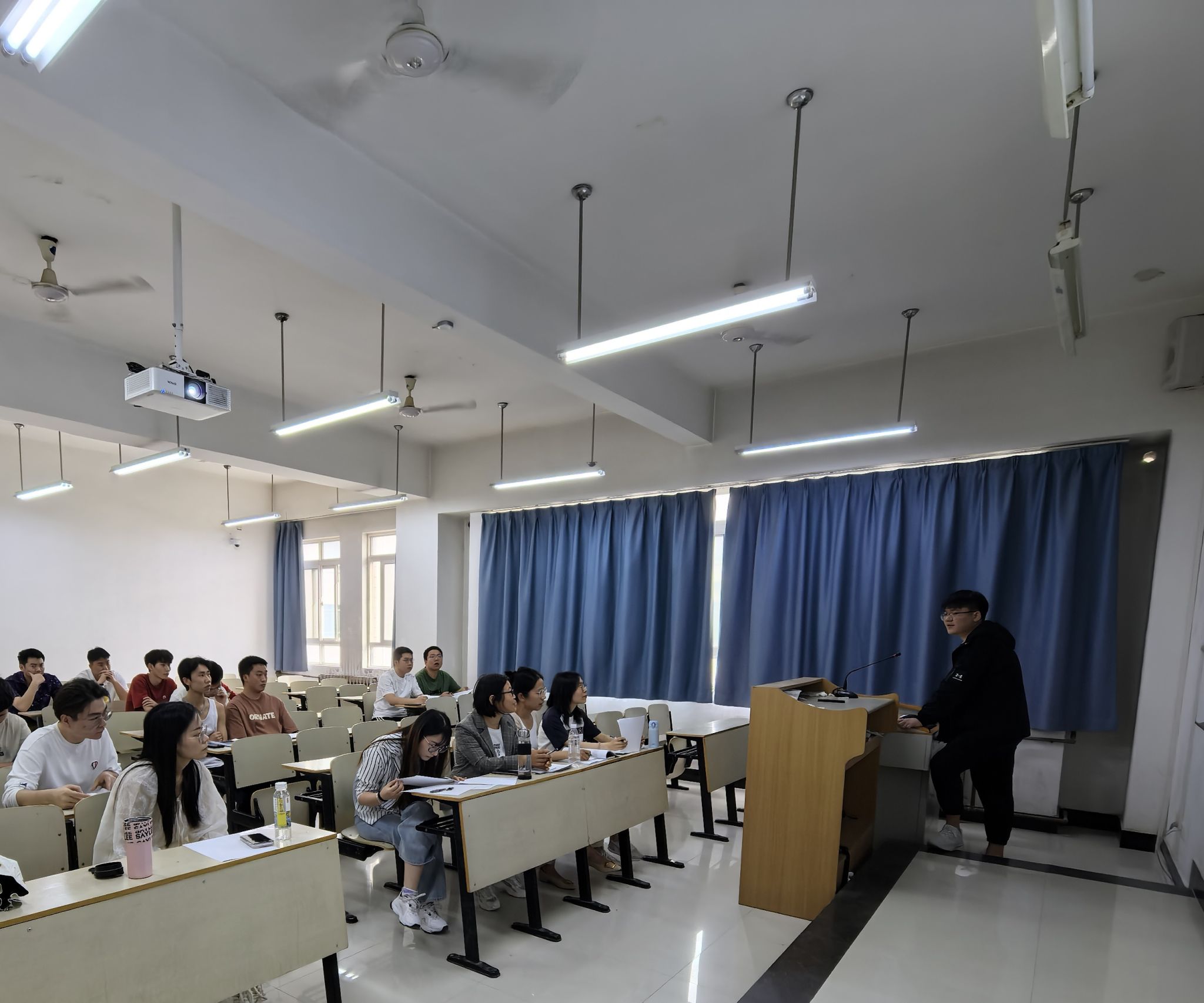 4月18日下午,球友会组织开展了2025届毕业论文(设计)中期答辩。校级教学督导郑镁教授到场指导、球友会副经理黎莹及全体教师参与抽查评审,答辩工作分三个小组进行,共计40名员工参加。