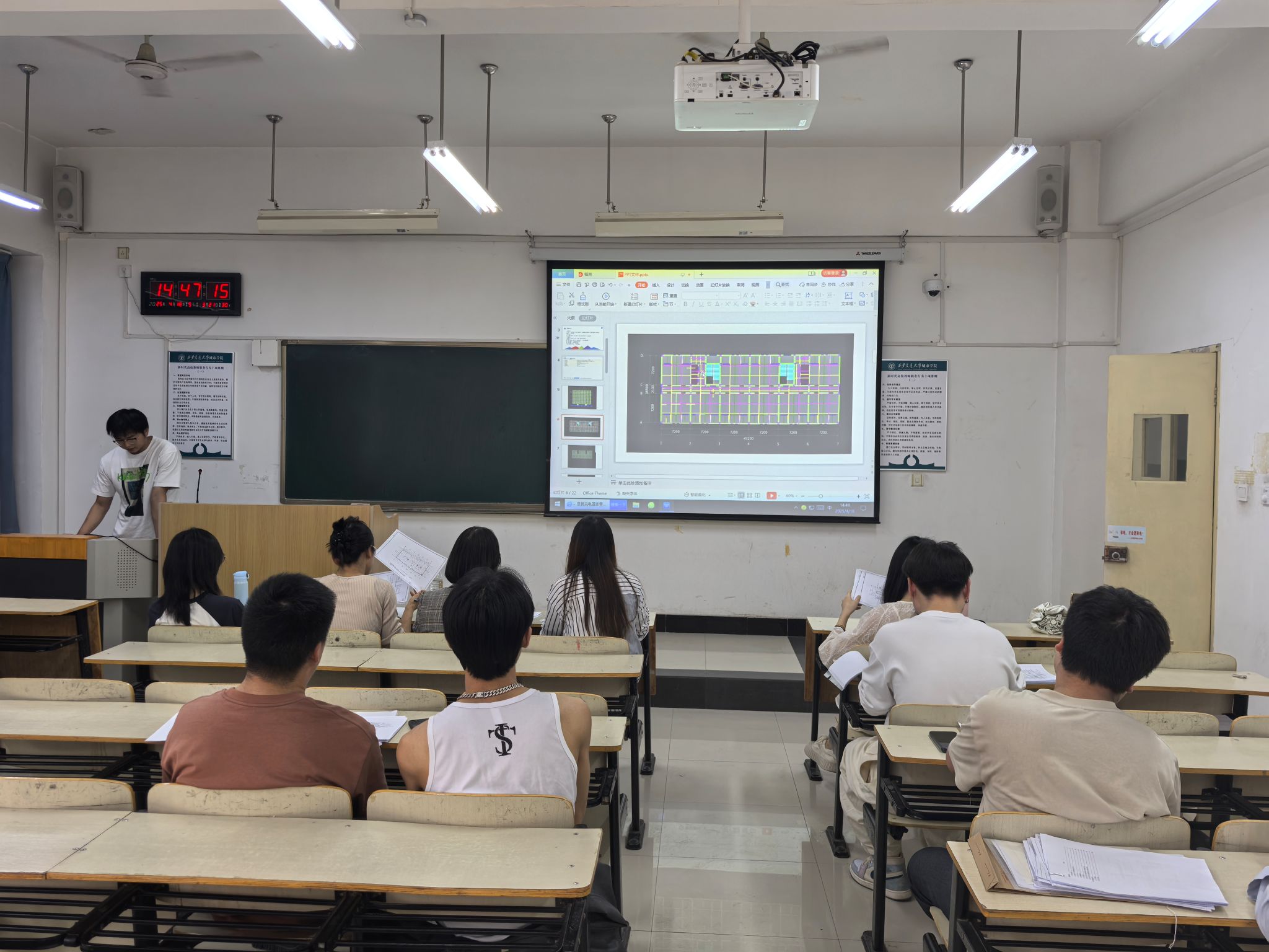 答辩汇报从论文实施安排、工作进展情况和下阶段工作计划三方面展开,同时要求答辩员工提交纸质版设计成果、实验记录,调研数据或分析报告等阶段性成果材料。评审教师从设计规范性、技术可行性等角度逐一点评,并提出改进建议,帮助员工进一步完善设计内容。