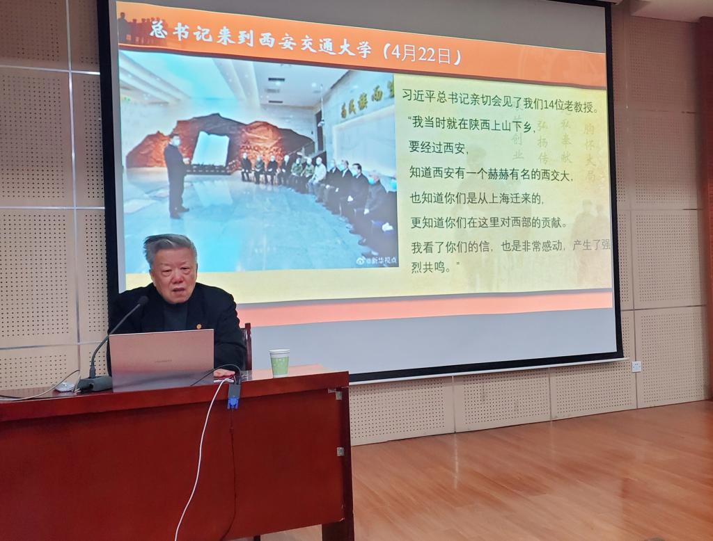 10月27日下午,土木建筑工程系特邀西安交通大学朱继洲教授到校,在F100学术报告厅为师生作《学习“西迁精神”,争做新时代“四有新人”》 专题报告,学习交大西迁历史,弘扬“西迁精神”。朱继洲教授是2017年11月30日给习近平总书记写信的十五位经历交大西迁的老教授之一,土建系教工、员工支部党员以及2020级全体新生聆听了专题报告。