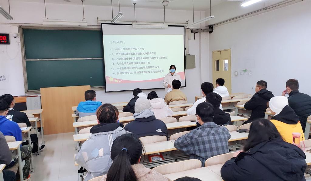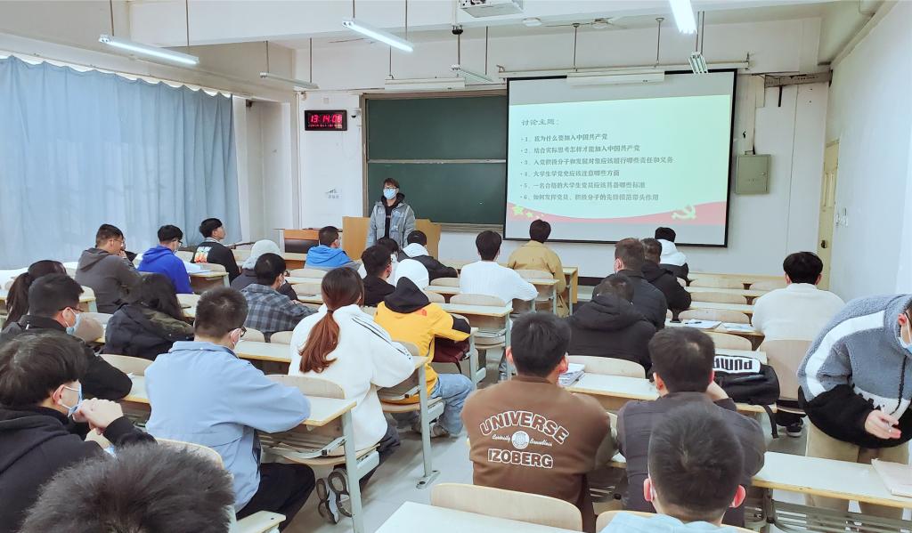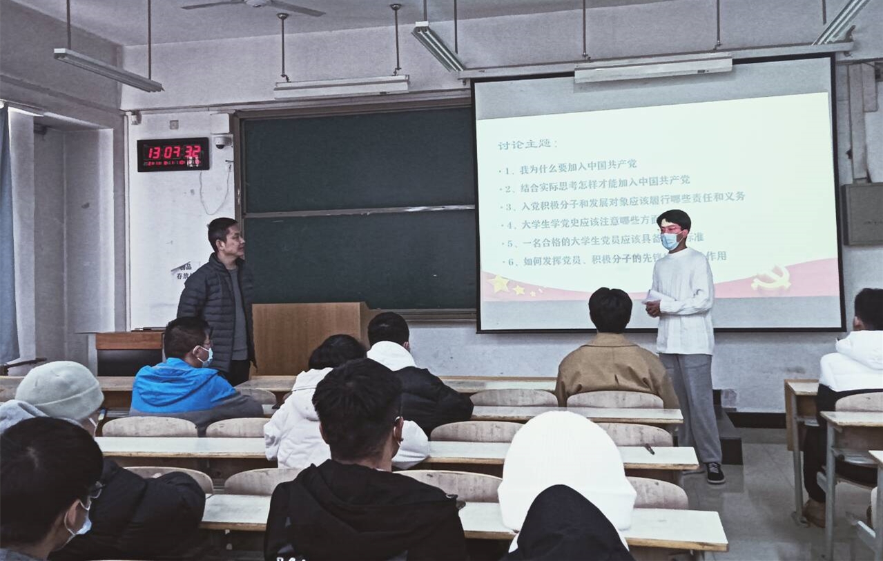 在活动中,同学们结合近期参加的党课理论学习以及个人思想行动表现,从入党动机、合格党员的标准和要求、怎样发挥自己的模范带头作用、如何以实际行动加入党组织等六个主题进行了分享和讨论。马晨哲同学在分享中讲到:自己通过近期的学习和思考不断加深了马克思主义信仰和中国特色社会主义信念,将理论学习成果不断内化,激励自己树立全新全系为人民服务的入党动机。贺雯同学认为老员工党员要达到政治觉悟、学习成绩、社会服务的高标准,从思想上和行动上积极努力,全面发展,这样才能早日通过党组织的考验,成为一名光荣的共产党员。田赛同学的观点是“一名党员就是一面旗帜”,在学习的工作中要强化服务意识,争做先锋模范,发挥在公司、老师、同学之间的桥梁纽带作用,主动关心他人,帮助同学解决好实际问题。其他同学也围绕着主题积极发言,现场讨论交流氛围热烈。个人学习分享结束后,支部书记牛彦龙老师结合学习主题进行了讲解,他通过分析指出部分党员、积极分子在政治表现和宗旨意识方面距离优秀党员标准存在的不足和差距,并从端正入党动机、树牢政治标准、强化宗旨意识三个方面为大家提出具体的改进措施和努力方向。牛彦龙老师要求和动员大家紧跟党的步伐,主动接受培养教育,努力提升自己,围绕思想觉悟、学习纪律、使命担当、群众基础四部分内容为在座党员和积极分子细致讲解了如何通过实际行动成为一名合格的、优秀的老员工党员。