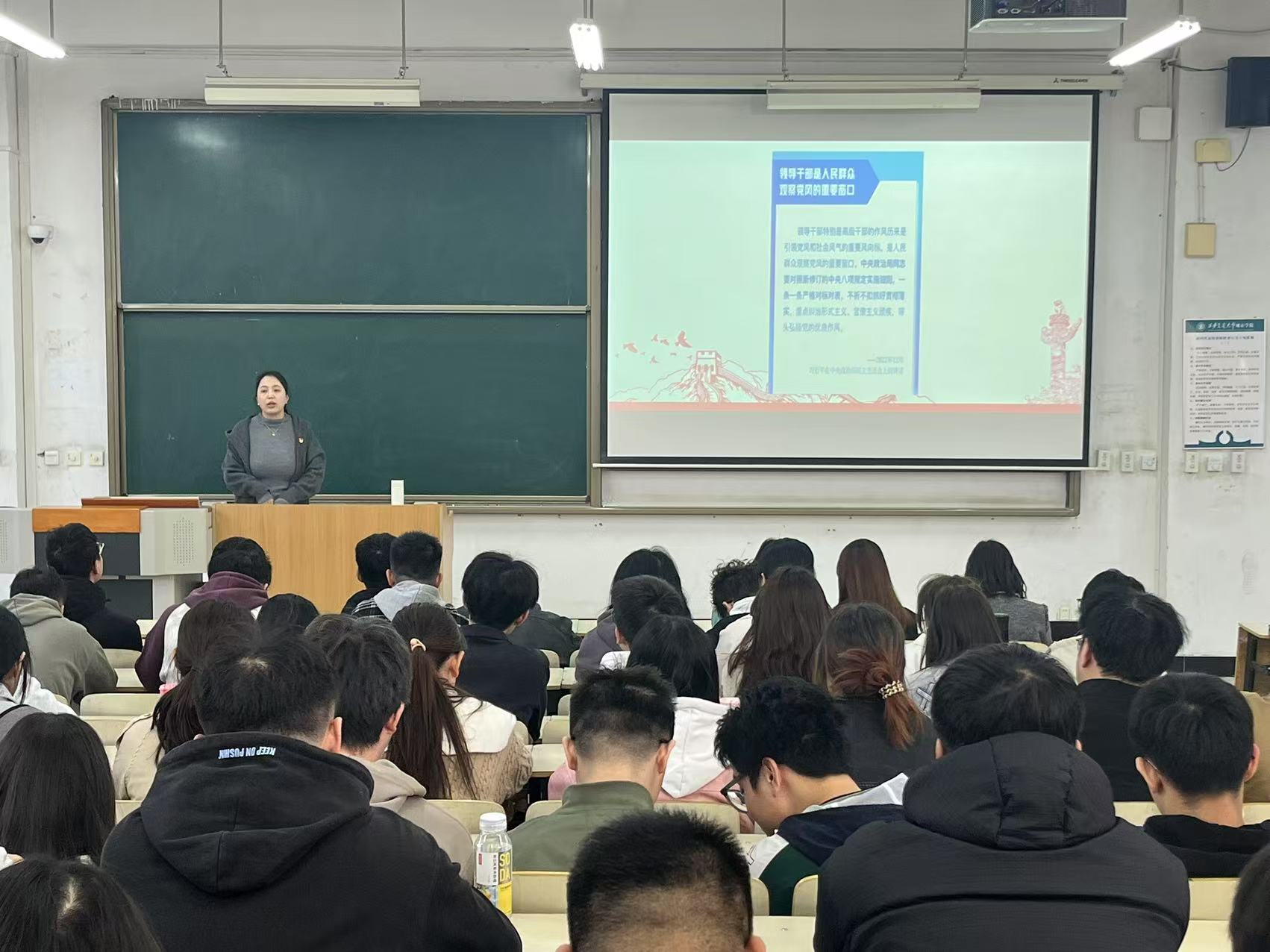 会议第二环节聚焦中央八项规定精神的再学习、再落实。组织委员张庆莹老师带领大家重温中央八项规定具体要求,强化员工党员的纪律意识和底线思维。张庆莹老师指出:“员工党员虽未身处权力岗位,但作风建设须从细微处抓起。要坚决抵制学术不端、铺张浪费等不良风气,在评优评先、员工工作中坚持公平公正,以清廉作风树立榜样。”