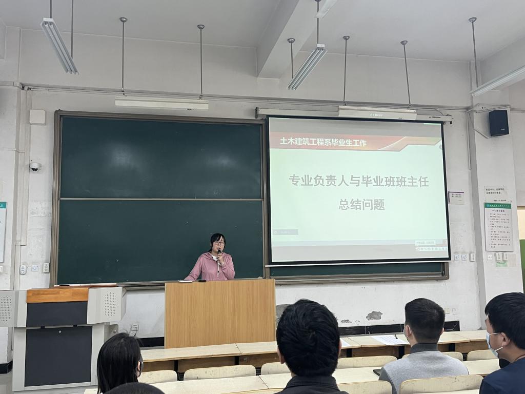 首先,系主任助理、专业负责人黎莹与康彦青分别进行了毕业生学业和就业形势主题宣讲,两位老师围绕毕业季主题,结合近期毕业生在学业和就业行动过程中的表现,将部分同学存在的问题一一摆出,要求同学们对照加以改正。同时,对系里针对问题员工采取的英语学习、专业促就业、重点帮扶等活动进行了现场部署和安排,全力推进毕业生各项工作。接着,系主任助理、学工负责人牛彦龙对老员工应征入伍,“西部计划”、“三支一扶”等基层就业项目,包括边疆省市定向招聘,自主创业等老员工就业政策进行了详细的解读和说明,并对以上各项目的报名条件、优待政策及适合群体进行了解析,鼓励符合条件的毕业生积极响应国家政策,前往基层进行就业服务,开辟个人新的发展方向和平台。同时,牛彦龙老师根据我系近一月毕业生就业签约情况,介绍了建筑行业近期招聘形势的变化和趋势,以及根据当前形势,系里所采取的建档监测、困难帮扶、就业指导、访企拓岗等促就业措施,鼓励同学们树立自信,积极配合参与专场招聘活动,加强政策和形势学习,以变应变,师生共同努力,力争在离校前找到满意的工作岗位。最后,部分对国家基层就业与服务项目感兴趣的同学与老师们进行了互动交流。