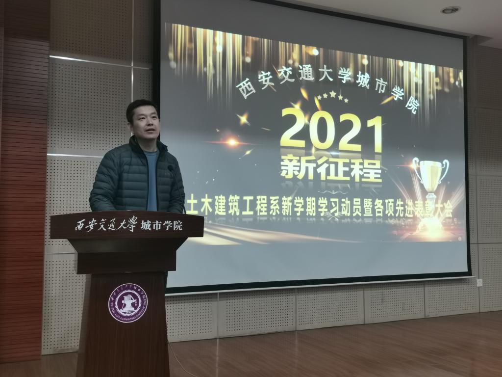3月10日中午,土建系在F100举行新学期学习动员暨先进表彰活动,系主任廖红建教授与全系教工、各年级员工代表共同出席活动,本次活动由系学工办主办,员工工作负责人牛彦龙主持。
