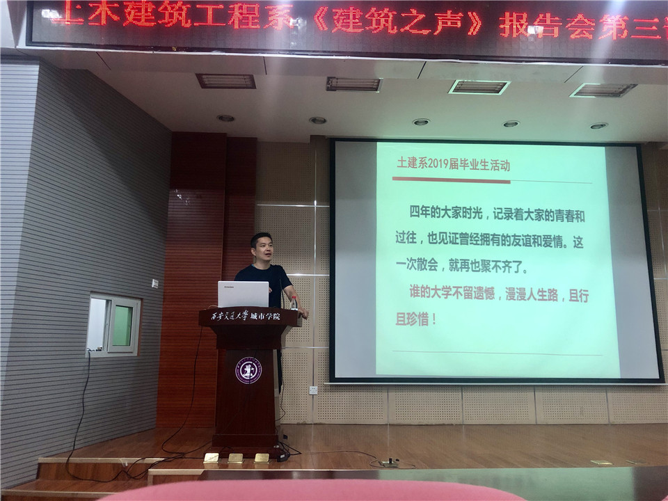 6月5日下午,土建系在F100组织召开了2015级毕业生毕业班会,系员工主管牛彦龙老师和全体毕业生参加,会议旨在总结2015级员工老员工活,对即将开始的文明离校进行动员。