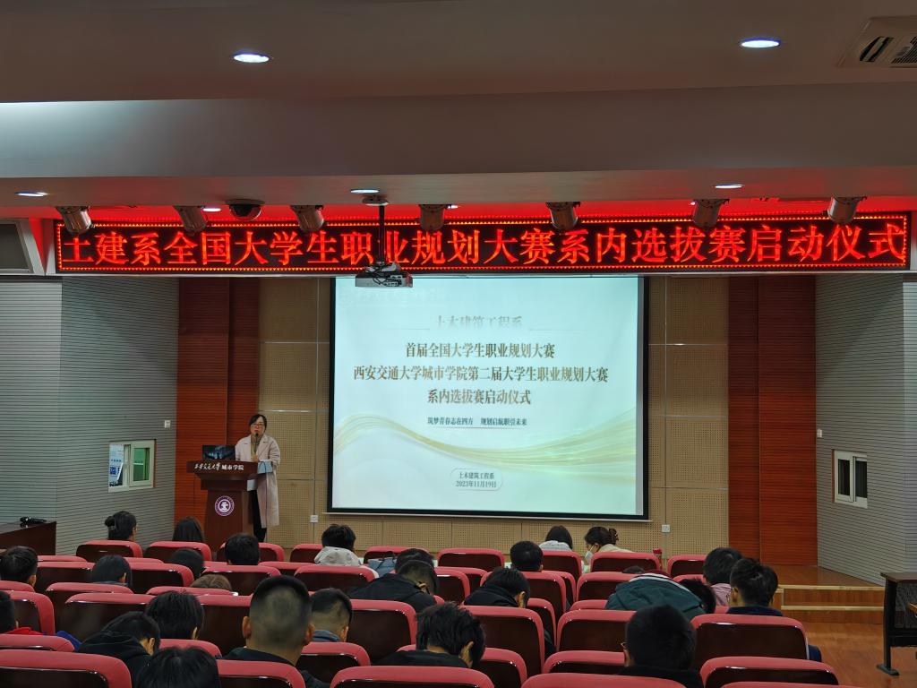 为引导土建系员工树立正确的成才观、就业观和择业观,科学合理规划学业与职业发展,实现以赛促学、以赛促教、以赛促就,提升就业竞争力,土建系于11月20日F100报告厅举办土建系职业规划大赛系内选拔赛启动仪式。土建系副主任黎莹、指导教师郭秀芹、梁娟萍、王雪妍、张庆莹、杨洋出席活动,土建系大一至大四全体参赛员工参加,活动由土木(专升本)2301班贾吉超同学主持。
