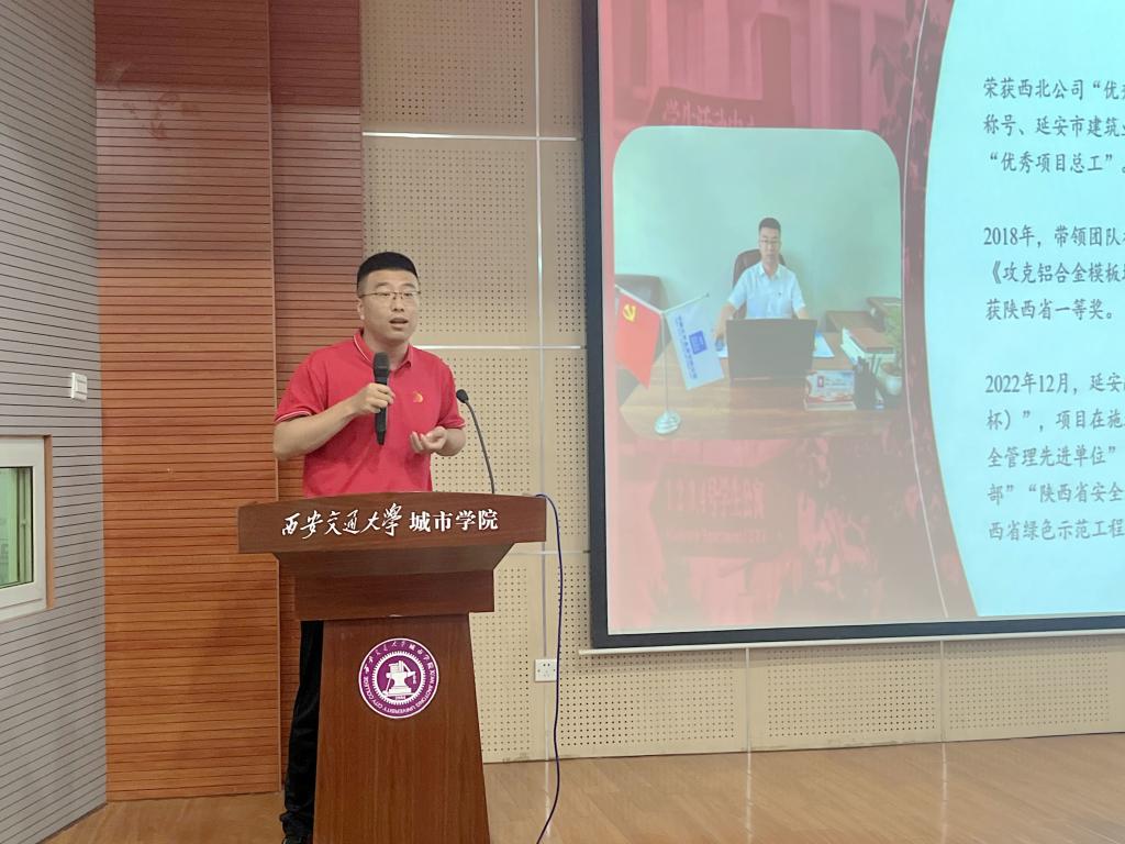 中建新疆建工西北公司项目党支部书记、项目总工、2016届员工刘玮从行业的特性、发展趋势以及个人成长等方面展开介绍,鼓励学弟学妹扎实掌握土建专业的基础知识和技能,注重理论与实践相结合,多参与实际工程项目,将所学知识运用到实际工作中。