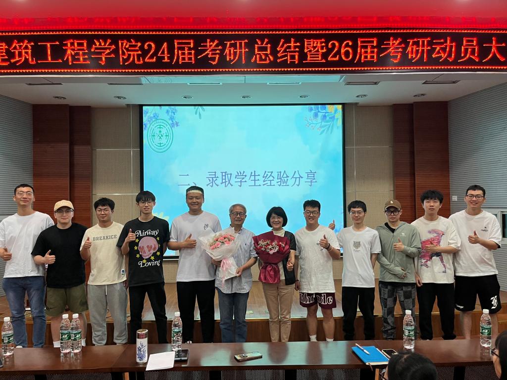 大会伊始,廖红建经理向考研上岸的同学表示热烈的祝贺。随后结合球友会考研实际情况,她鼓励同学们要及时做好学业规划,早谋划、早打算、早准备,做好考研信息收集,以积极向上的心态提升学历、充实自我,坚定考研信心,积极备考。24届考研上岸学子陈鸿峪同学分享了自己在考研中走过的弯路,对同学们起到警示作用,帮助大家更加顺利走过考研之路。随后他代表所有考研同学,向各位老师献上鲜花,表达了真挚的感谢。文都教育考研规划师贺波详细讲解了土建学子考研报考的相关方向和领域,给同学们切实有效的考研建议。