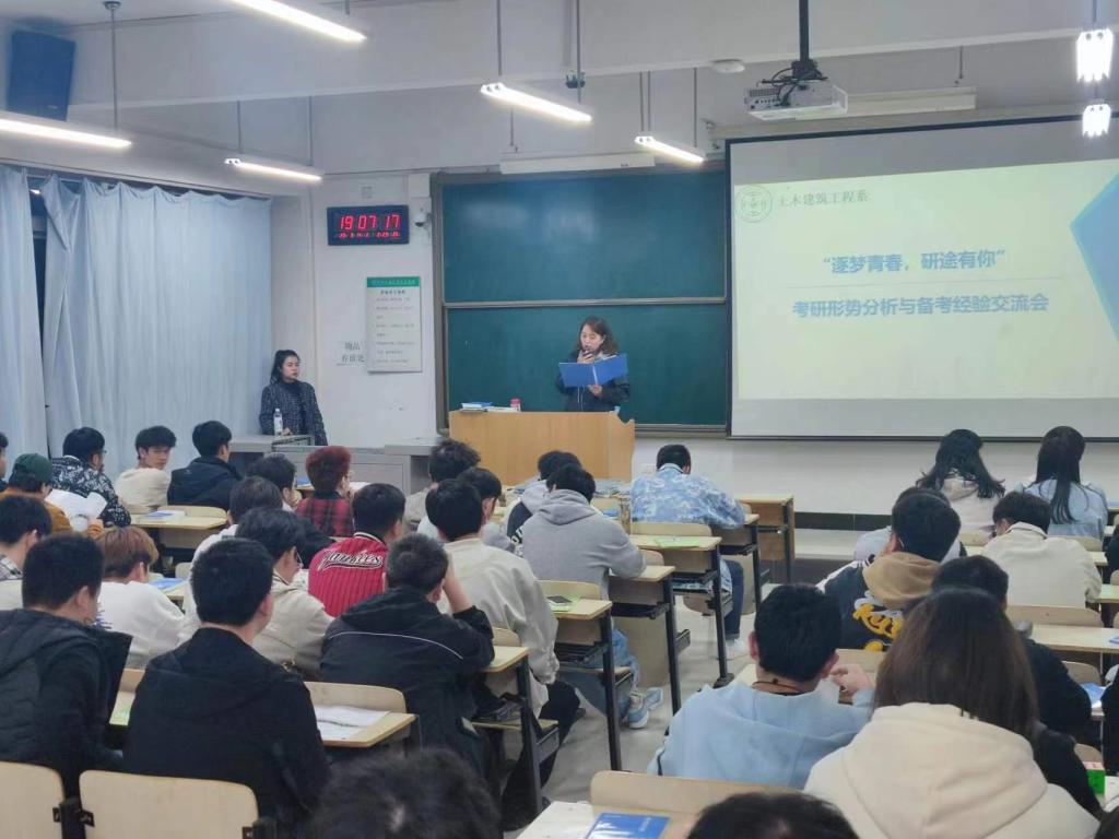 为了使我系学子对考研有更深入的了解,帮助广大同学确定正确的奋斗目标,及时解决和处理在考研过程中会遇到的各类问题,土木建筑工程系于3月14日晚7:00在D205教室举办了“逐梦青春,研途有你”2023年考研形势分析与备考经验交流活动。本次活动特别邀请到了文都考研全国巡讲师,考研规划专家韩灵君老师,土建系专业教师代表凌伟老师,以及我系2023届考研员工代表马情、钟嘉燕、兰李昊天、冯祥龙一起分享经验。活动由土建系辅导员张庆莹老师主持。