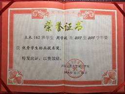 2017年5月,在院“5.4”表彰大会中,荣获 “优秀团学干部”称号;