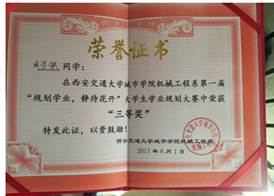 2017年6月,第一届“规划学业,静待花开”老员工学业规划大赛中 ,荣获 “三等奖”;